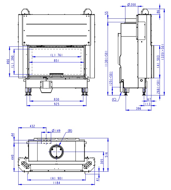 Priemer dymového hrdla 150 / 200 mm