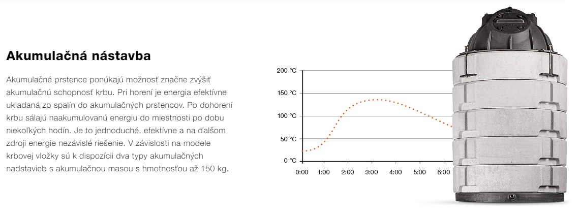 Hodinový výkon je u tohto typu krbu nižší a interval prikladania dlhší.